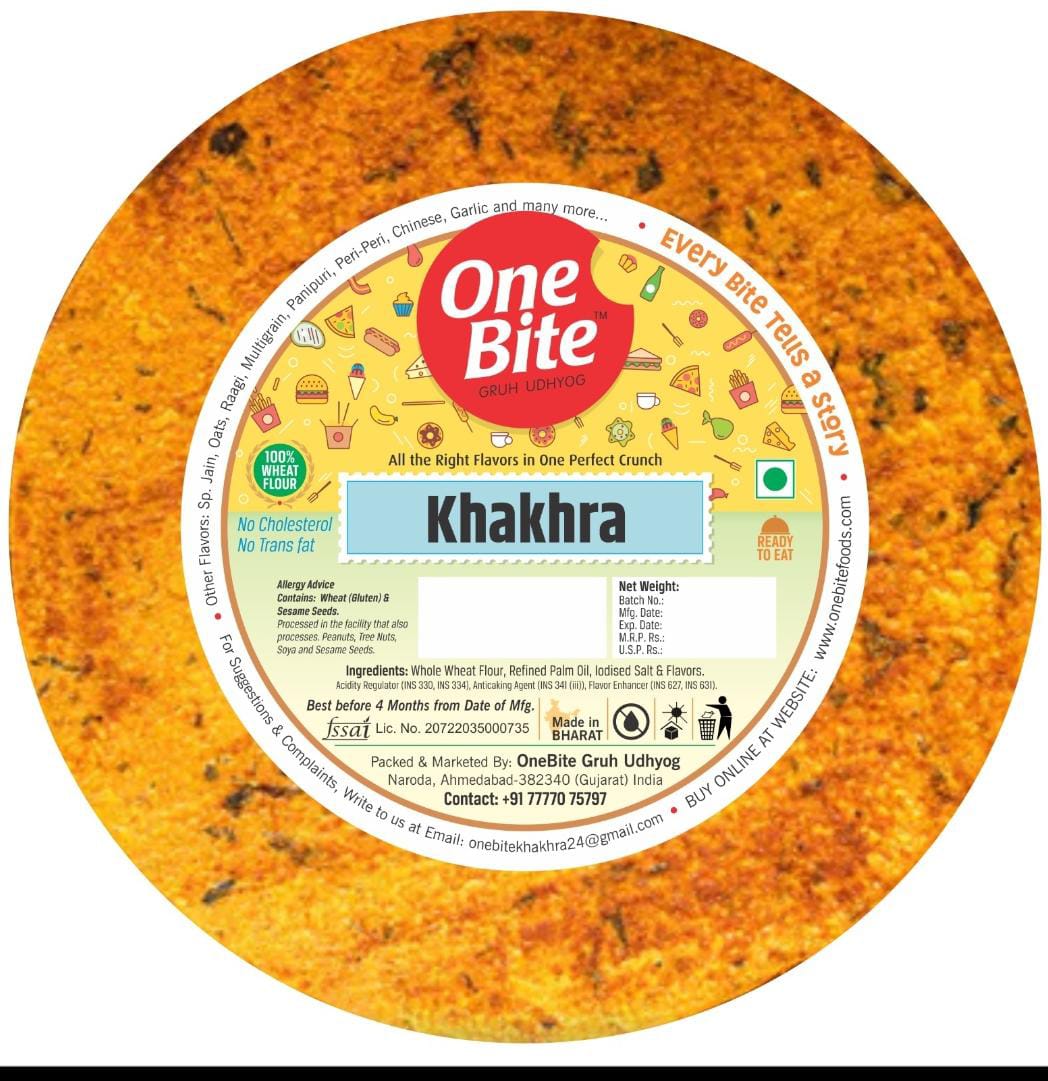 Experience the authentic taste of Gujarat with ONE BITE KHAKHRA. Made from high-quality ingredients and traditional recipes, our khakhras are not only delicious but also healthy and perfect for snacking anytime. From classic masala to innovative flavors, there’s a khakhra for everyone.